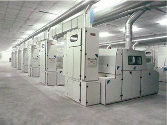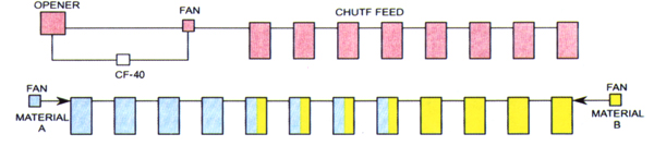 1.一條生產(chǎn)線一般供應(yīng)6-10臺,由開棉機至CF-940供棉量由1組連續(xù)供棉控制系統(tǒng)CF-40所管制,依實際產(chǎn)能自動調(diào)節(jié)。使整條供棉壓力維持一定的水平。
