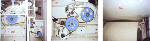 可以視察棉網(wǎng)的皮圈道棉裝置,保證了棉條可以高速穩(wěn)定運轉(zhuǎn),精心設(shè)計的壓輥具有自調(diào)勻整檢測羅拉的功能 | 包針布給棉羅拉,實現(xiàn)彈性握持,減少纖維損傷。杠桿式的加壓結(jié)構(gòu)與自調(diào)勻整的檢測裝置通用。 | 全機多吸點連續(xù)吸、壓力連續(xù)檢測 |